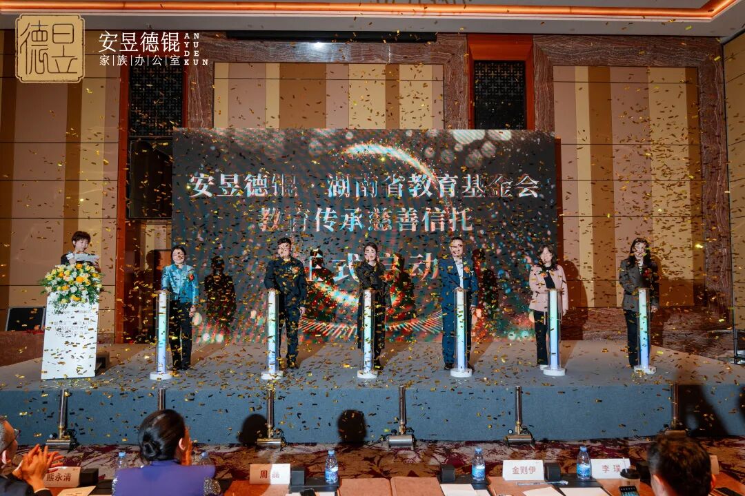 湖南省教育基金会金则伊副秘书长、湖南省财信信托有限责任公司服务信托业务部总经理周磊,以及安昱德锟家办四位发起人,共同见证这一信托的正式发布与落地。